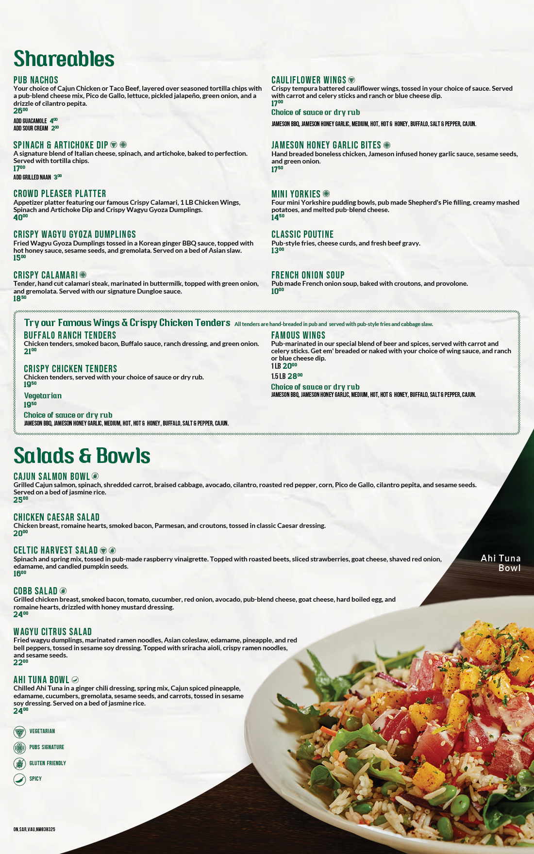 *Both the food and beverage menu pricing vary per location.