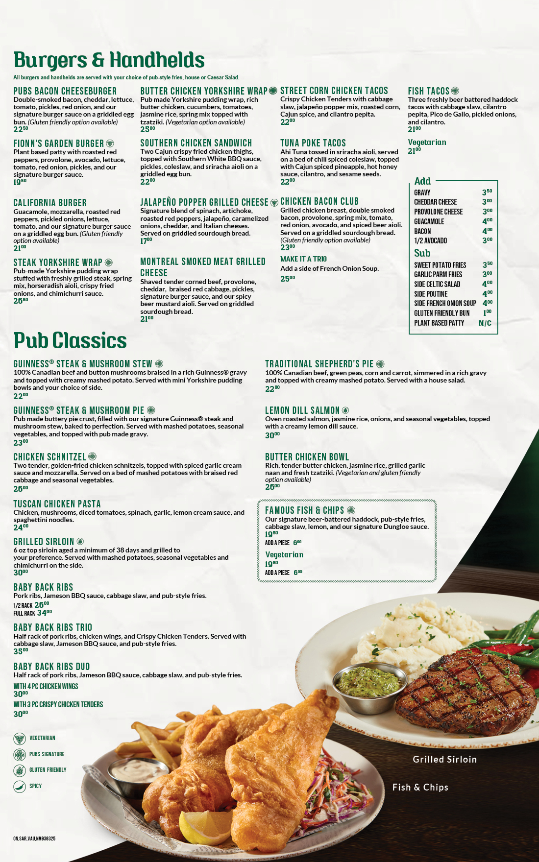 Fionn MacCool’s Menu