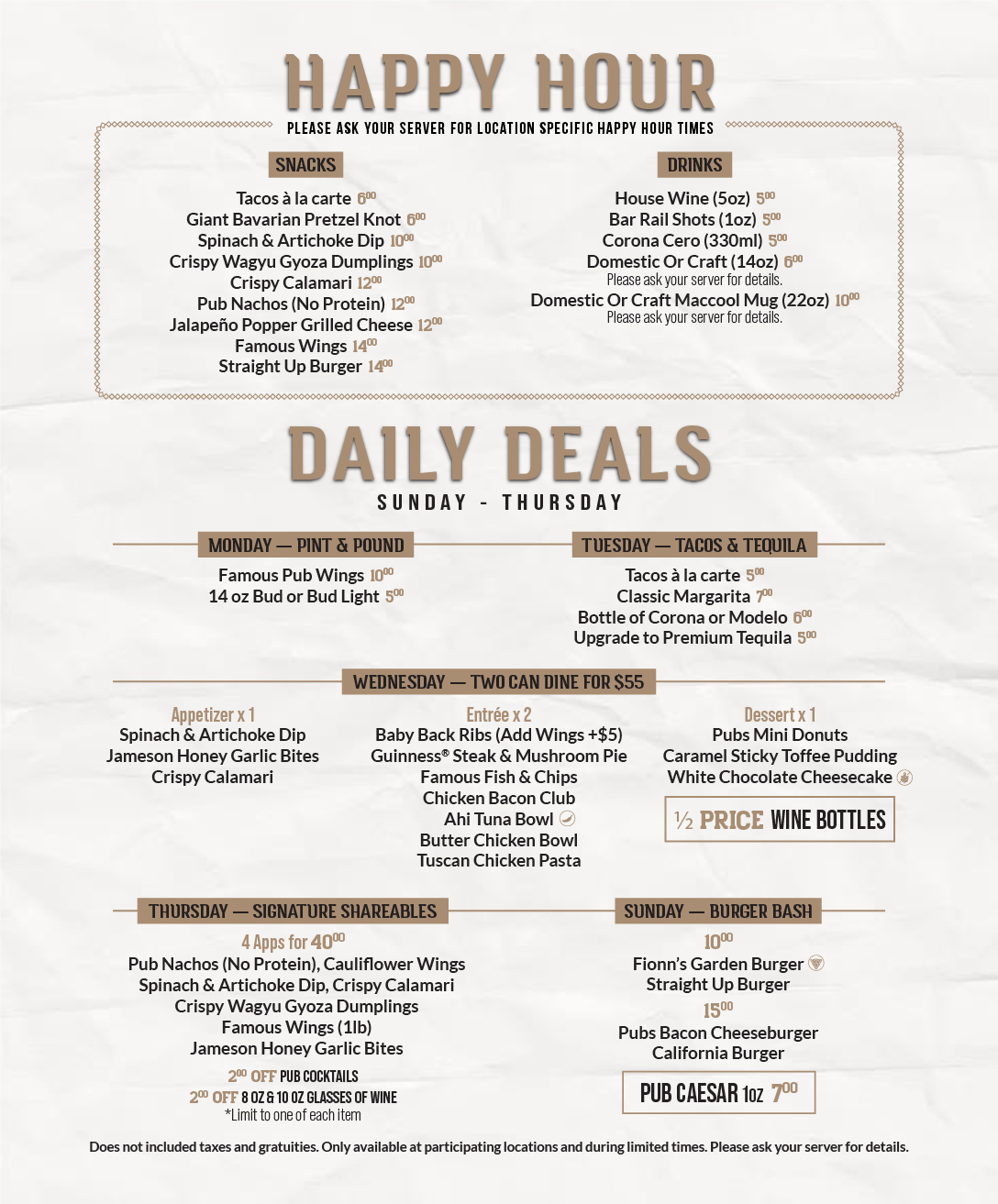 Happy Hour & Daily Deals